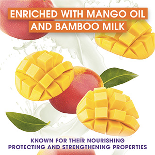 Mango Oil has nourishing and strengthening properties and Bamboo Milk has strengthening properties.