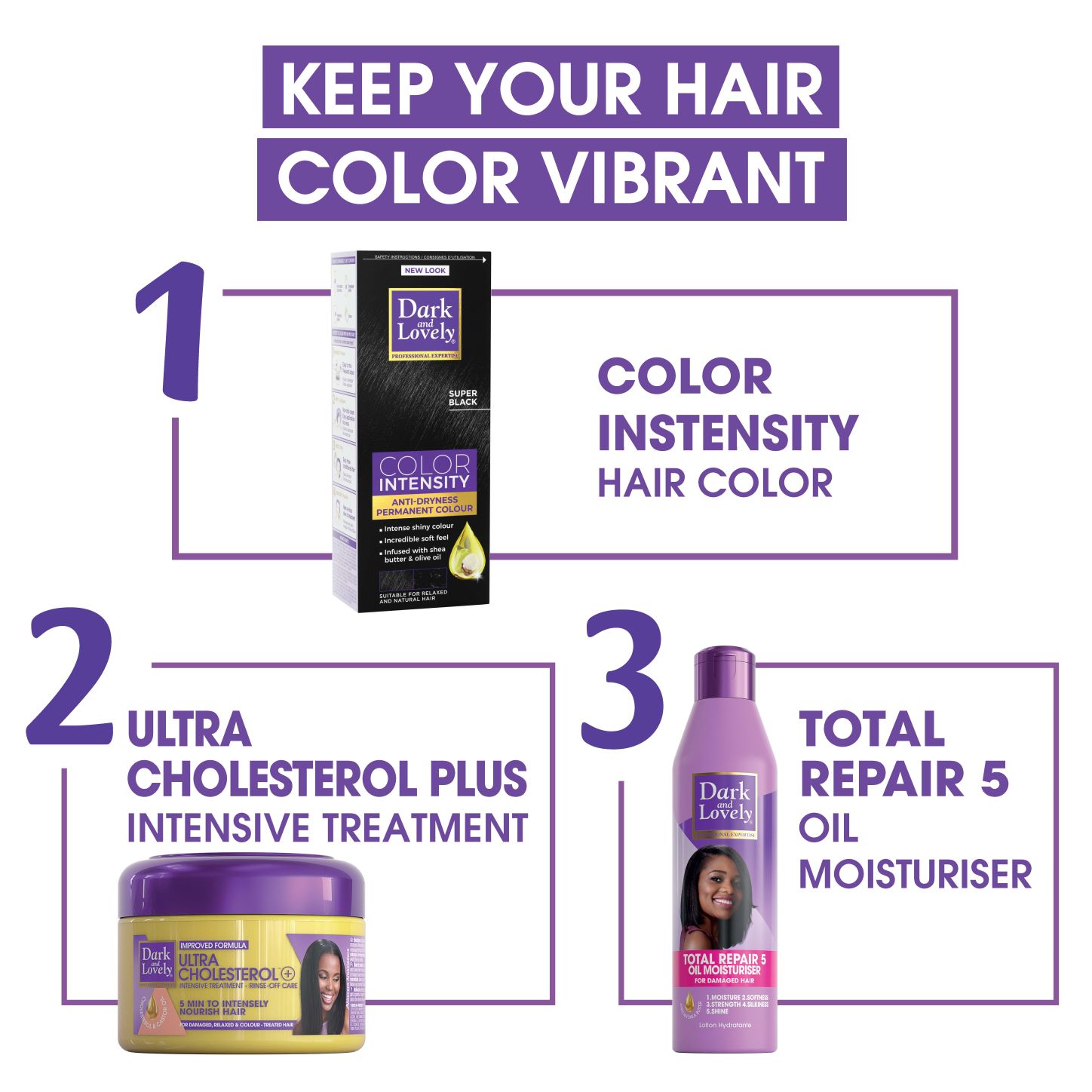 • Use the Dark and Lovely Color Intensity Anti Dryness Permanent Hair Colour whenever needed but ensure it is not used right after relaxing.