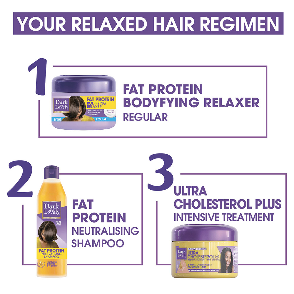 250ML, 2L, 450MLDark and Lovely Fat Protein Neutralising Shampoo is specially designed by our African hair experts to neutralise the relaxing process and soften hair just after relaxing.