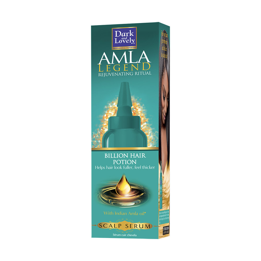 100MLDark and Lovely Amla Legend collection is specially designed by our African hair experts to deliver the best daily care for dry hair and scalp. Undo 2 years of damage in 2 weeks* with the Dark & Lovely Amla Legend Rejuvenating Ritual infused with Amla Oil from India. Dark and Lovely Amla Billion Hair Potion Scalp Serum is expertly formulated to intensely refill the scalp in moisture to promote healthier growing hair. The serum strengthens your hair for a fuller, thicker texture.