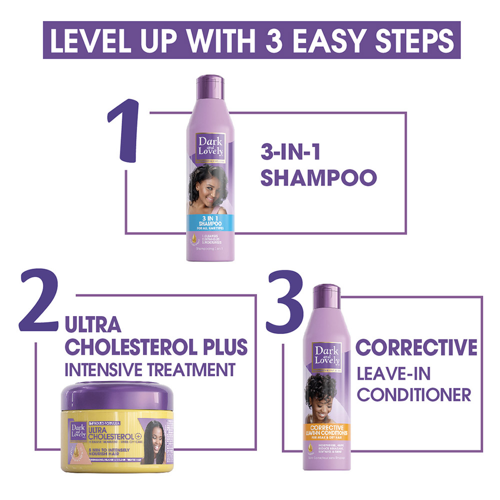 This Dark and Lovely Corrective Leave-In Conditioner rapidly restores moisture in your hair.